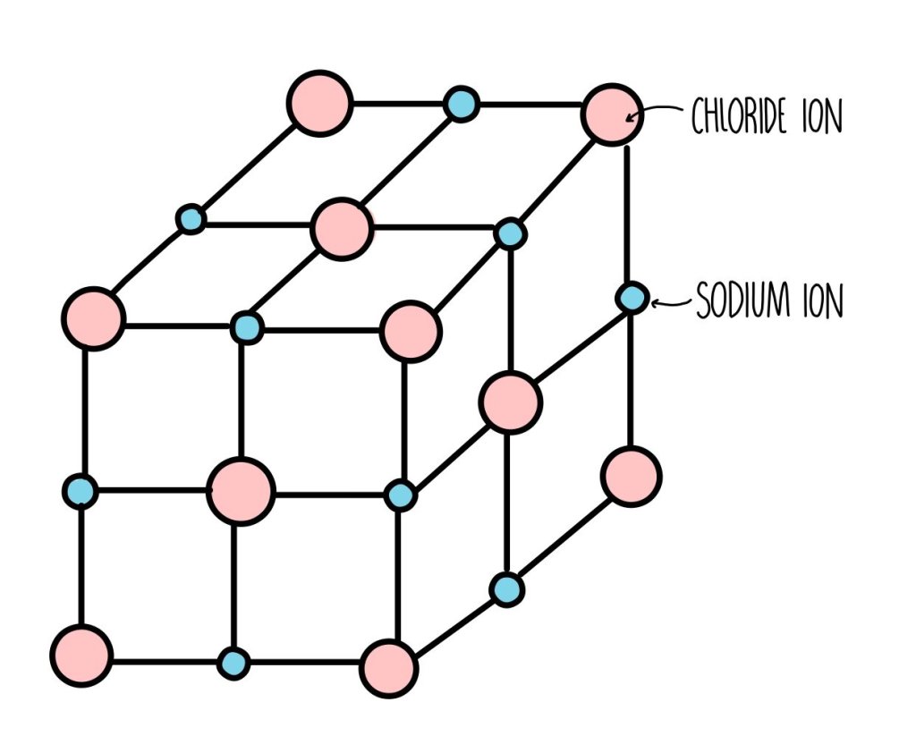 - Sodium chloride is an example of a compound with a giant sructure. It is made up of positive sodium ions and negative chloride ions.