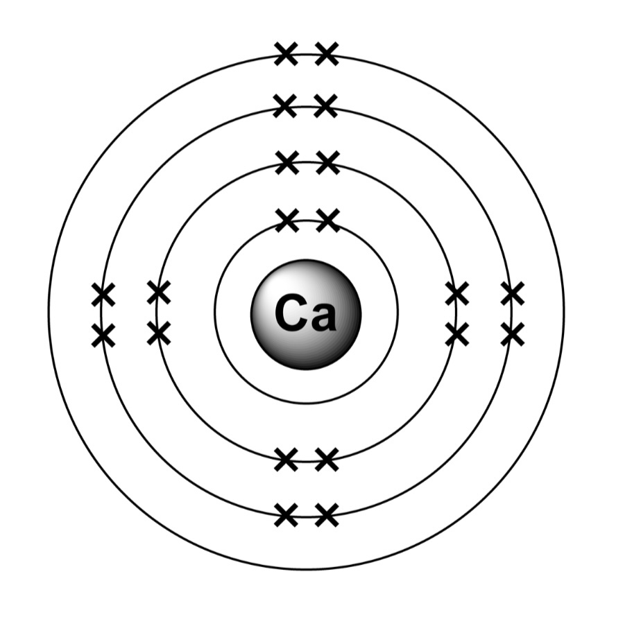 First shell holds two electrons, second, third, fourth (and so on) shells all hold eight electrons.